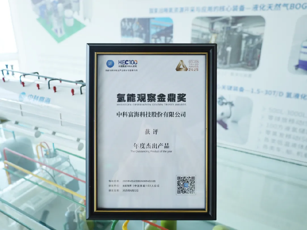 4月22日,CHEC2025第五屆世紀(jì)氫能與燃料電池大會(huì)在上海圓滿(mǎn)結(jié)束。會(huì)議以“聚焦氫未來(lái),助力碳中和”為主題,旨在打通氫能產(chǎn)業(yè)各環(huán)節(jié),推動(dòng)產(chǎn)業(yè)鏈發(fā)展。會(huì)議現(xiàn)場(chǎng)揭曉2025氫能觀(guān)察“金鼎獎(jiǎng)”名單,中科富海憑借在氫能領(lǐng)域的產(chǎn)品創(chuàng)新研發(fā)和產(chǎn)品應(yīng)用示范等方面的實(shí)踐成果,榮獲“金鼎獎(jiǎng)·年度杰出產(chǎn)品”獎(jiǎng)。氫能產(chǎn)業(yè)“金鼎獎(jiǎng)”是...